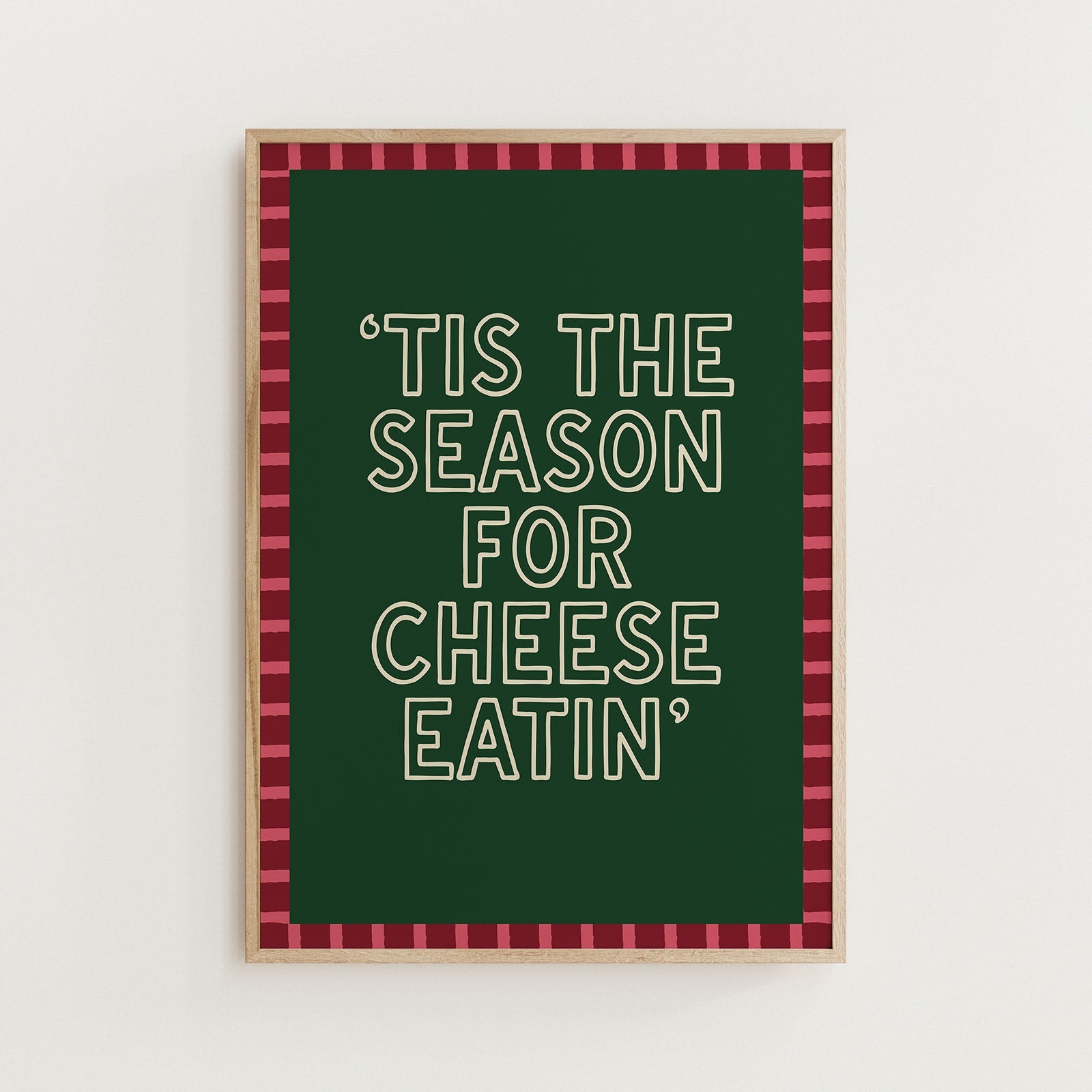 Celebrate the most wonderful (and delicious) time of the year with this ‘Tis the Season for Cheese Eatin’ print, the perfect Christmas print / festive wall art for food lovers and holiday hosts alike.