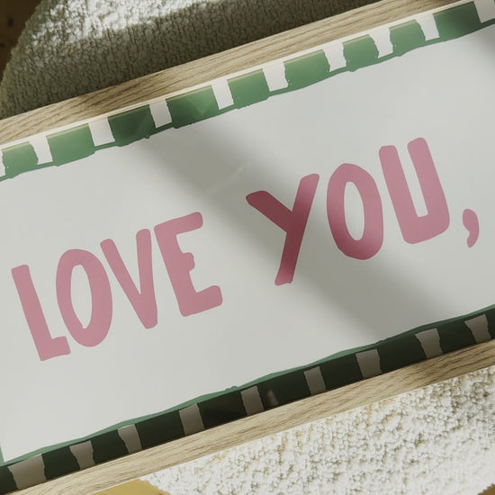 Our "Love You, Bye" horizontal print is designed to fit beautifully above a doorway in a hallway or entryway. We have two size options available either 30" (75 cm) wide by 10" (25 cm) tall or 8" x 20" (20cm x 50cm), its wide landscape format is perfectly proportioned to complement a standard-sized door.